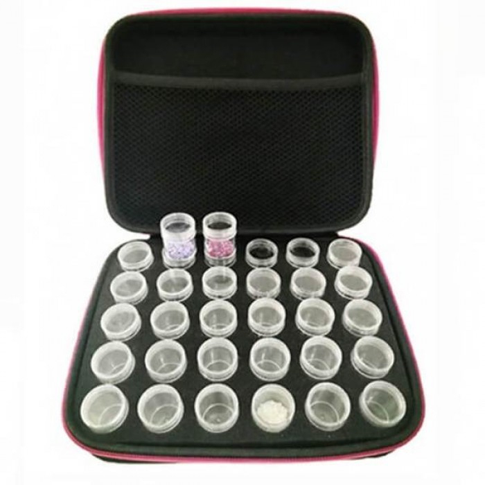 The carry bag includes 30 small plastic bottles inside, each bottle can hold 6 packs of diamonds.