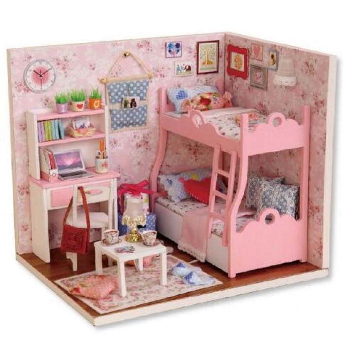 This is a handmade assembly model house. It is not finished product, some separate parts made of wood, fabrics and paper for you to DIY. You can give full play to your imagination, so to create your ideal house model.